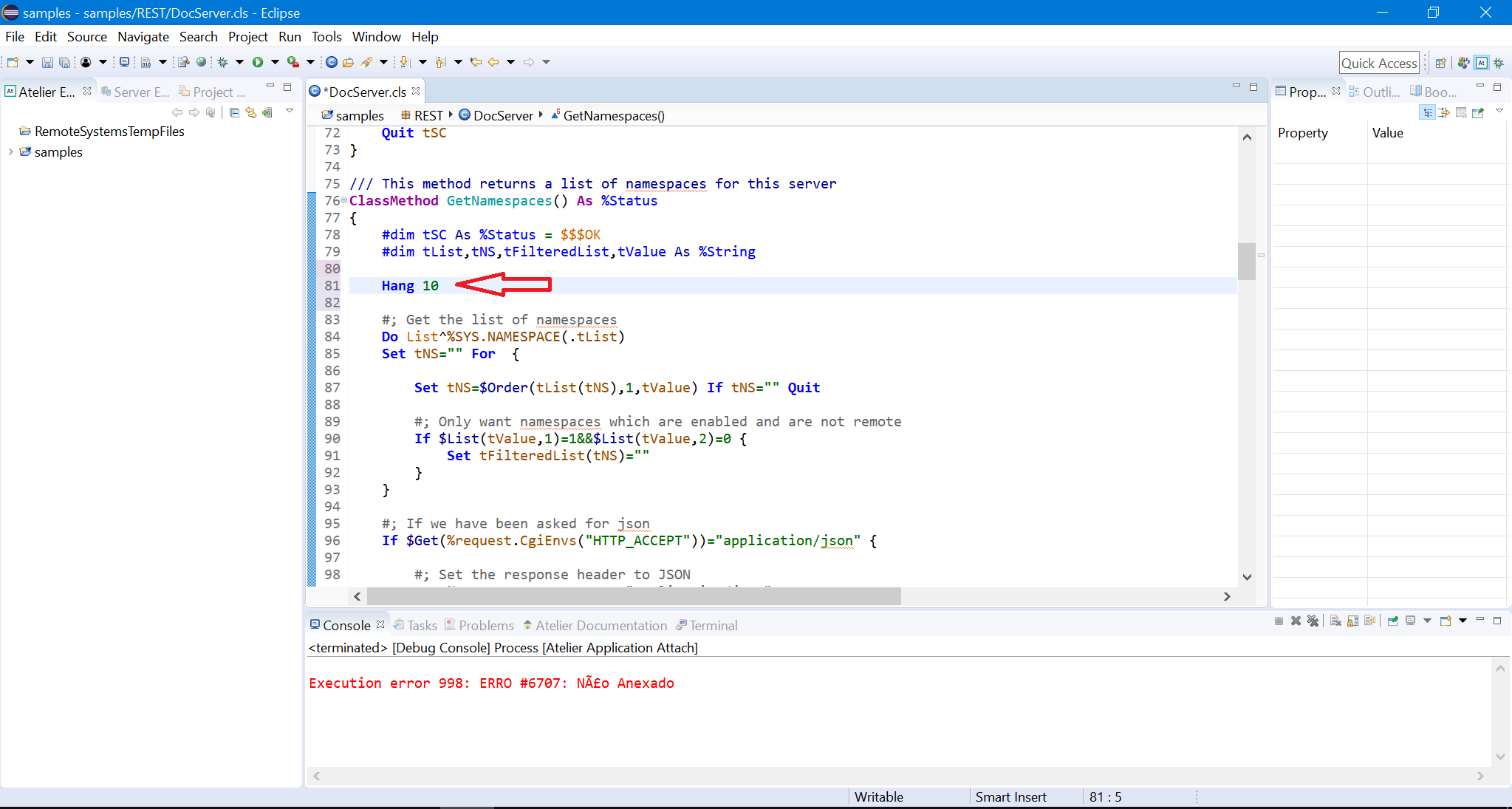 6 - Ve a Run->Debug Configurations->Application Atelier Attach