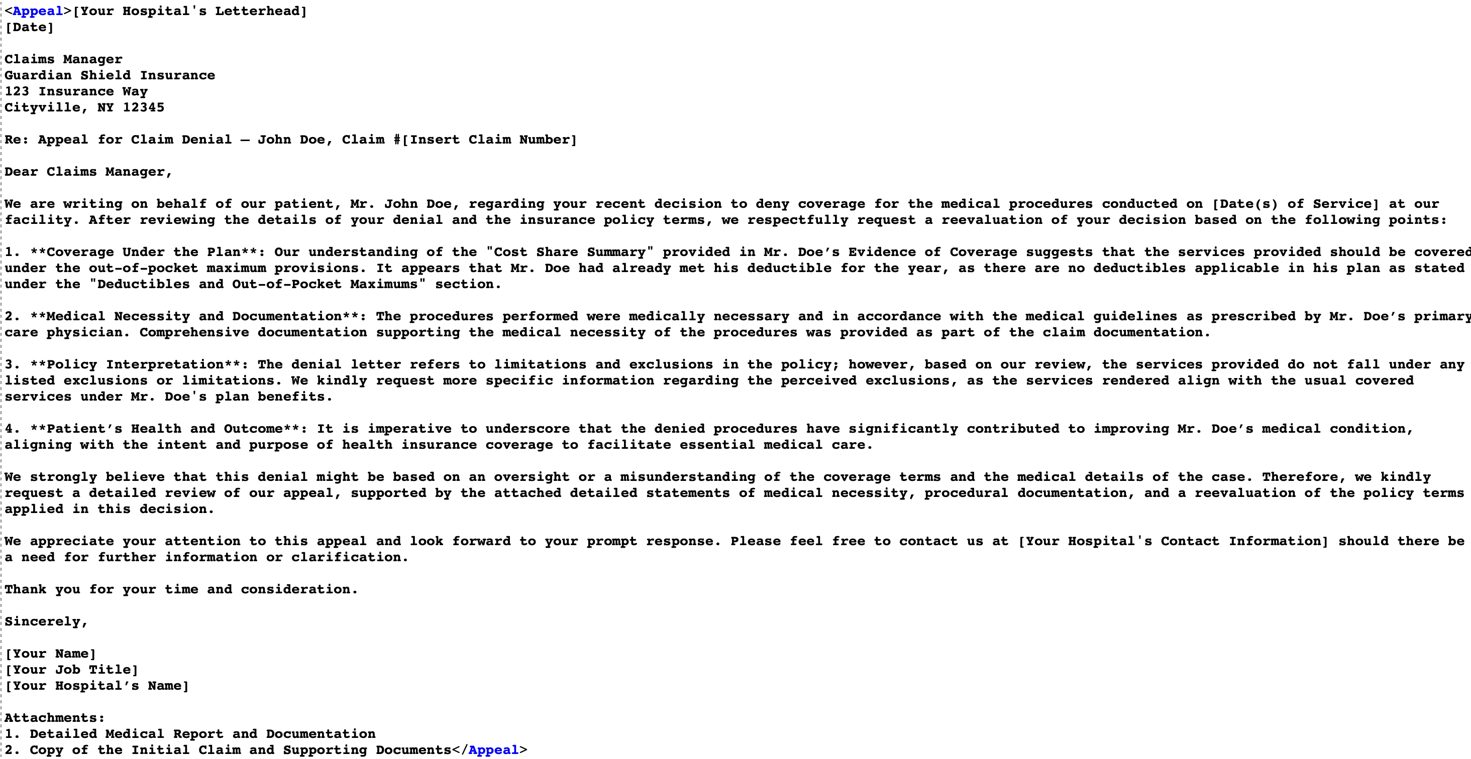 ¡Hola a todos! Aquí me gustaría compartir cómo utilizamos la búsqueda vectorial y la inteligencia artificial generativa (GenAI) con la tecnología de InterSystems. Como ejemplo, describiré el proyecto BG-AppealAI, que nuestra empresa presentó al concurso de Búsqueda Vectorial, GenAI y ML de InterSystems. La aplicación BG-AppealAI puede redactar una apelación si se sube un contrato de seguro y la carta de la compañía de seguros con la negativa a pagar los gastos médicos. Por supuesto, somos conscientes de que, en este momento, la IA no ha alcanzado un nivel tal como para crear documentos legales listos. Sin embargo, ya es posible crear herramientas que sirvan como asistentes para especialistas o usuarios comunes. De igual manera, nuestra aplicación es un asistente de IA que responde a la pregunta: "¿Es posible apelar?" y crea un borrador de carta de apelación, si es posible.
