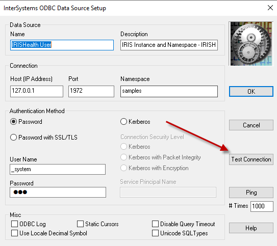 Paso 3: Configura la fuente de datos ODBC de InterSystems: