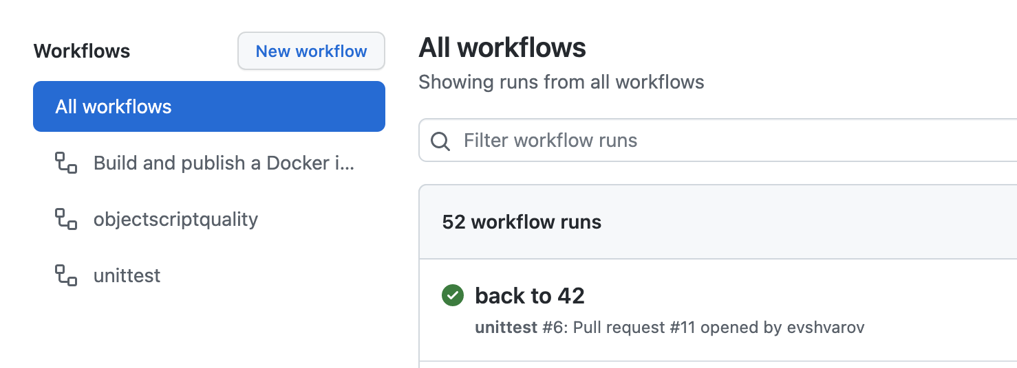 En resumen, hacer que GitHub construya imágenes docker y ejecute tus pruebas unitarias en tus proyectos IRIS con cada push o pull request requiere un escenario Github Actions para CI, que será el mismo en cada proyecto, y tres líneas en el Dockerfile: