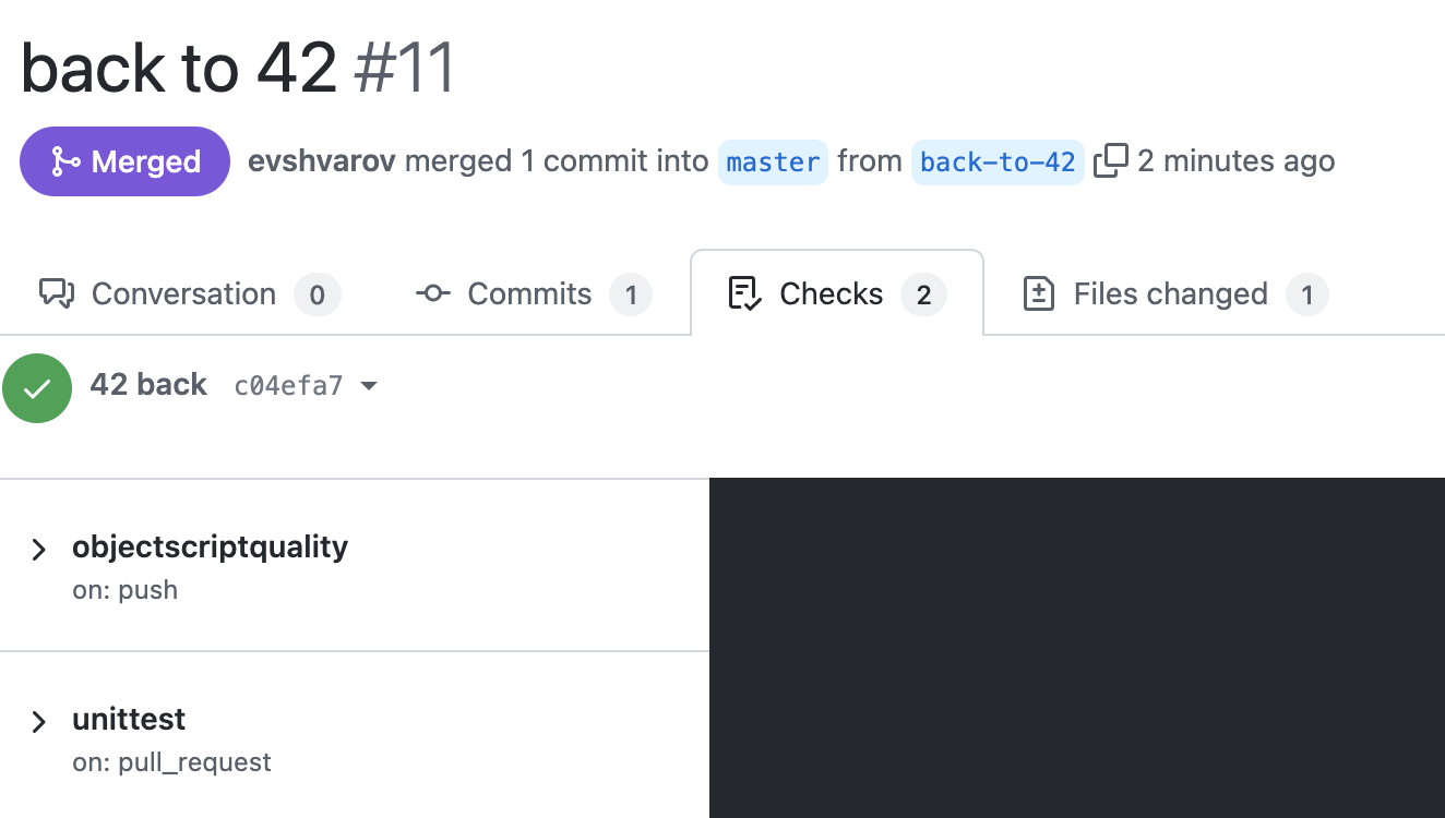 Y si es un Pull-Request puedes ver el resultado del CI en la sección especial Checks: