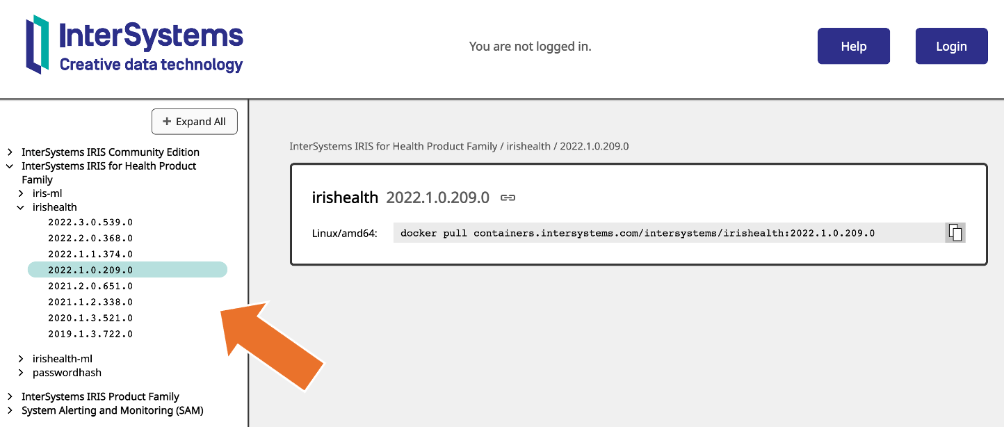 Los contenedores privados, incluyendo los de la Enterprise Edition de IRIS, se pueden ver haciendo clic en el botón Login. Una vez iniciada sesión, en el menú de la izquierda aparecerán los contenedores a los que se tiene acceso.