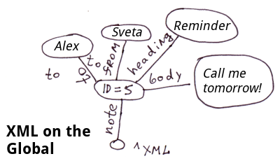 El método más fácil de descomponer XML en globals es almacenar atributos de etiqueta en nodos. Y si necesita acceso rápido a los atributos de etiqueta, podemos colocarlos en ramas separadas.