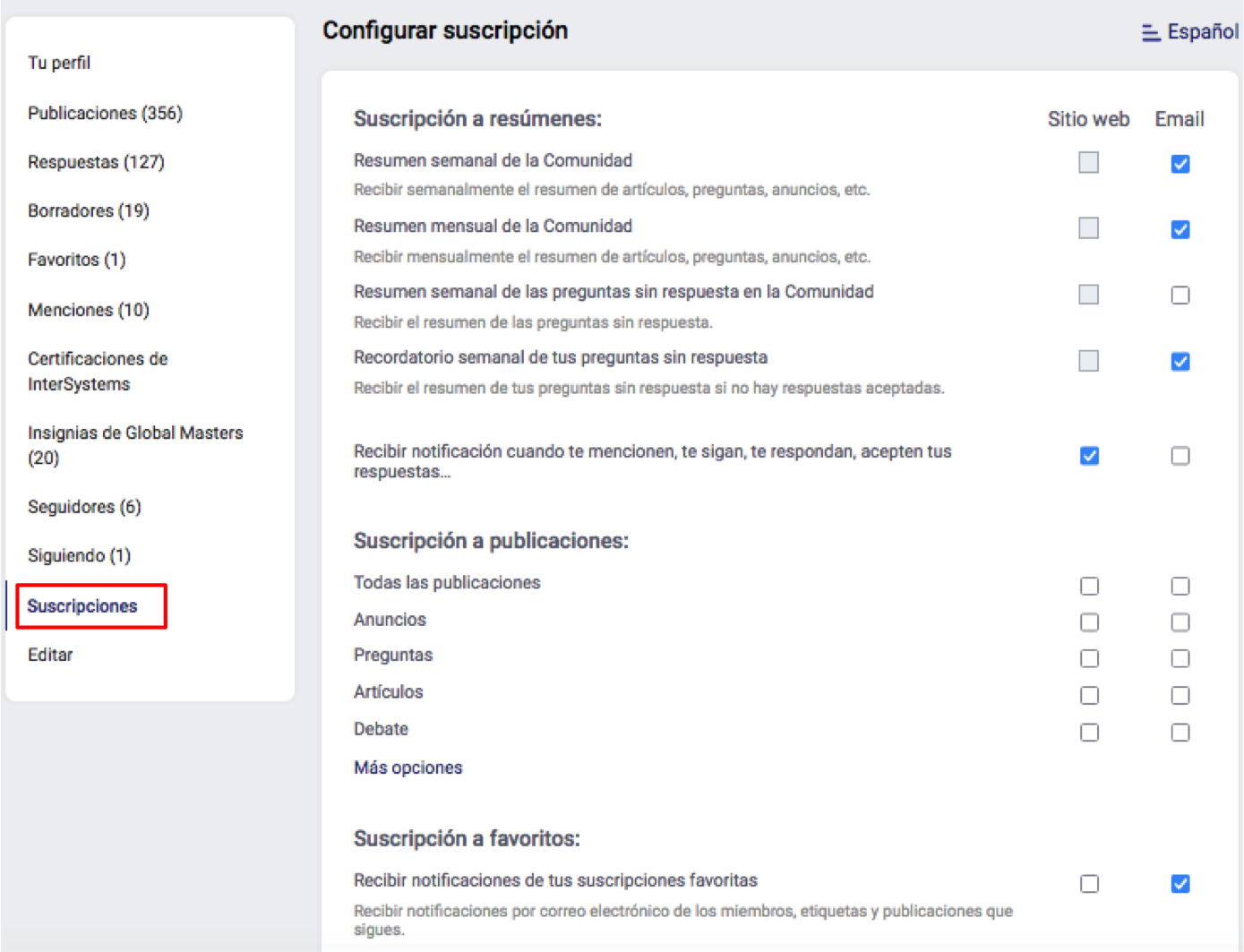 No os olvidéis de revisar la página de "Suscripciones", para elegir qué notificaciones queréis recibir de la Comunidad! La encontraréis al hacer clic en vuestro perfil, en el menú de la izquierda.