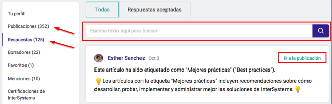 Sabemos que a veces necesitas buscar algo en tu propio contenido de la Comunidad. Por ello, hemos añadido una barra de búsqueda en las Publicaciones y en las Respuestas: