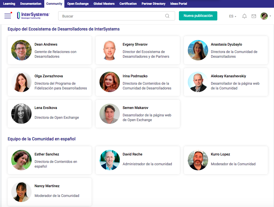 Una pestaña "Equipo" para dar a conocer las personas que se ocupan de la Comunidad: