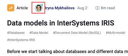 Ahora se puede saber de un vistazo si un miembro de la Comunidad ha conseguido la certificación oficial de InterSystems (antes tiene que haberla añadido a su perfil!) - su foto aparecerá con una marca de verificación verde tanto en sus publicaciones como en su perfil: