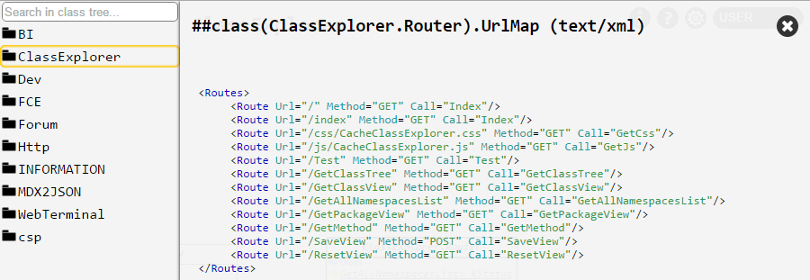 [Captura de pantalla 4] Visualización del contenido del bloque XData en la clase ClassExplorer.Router.
