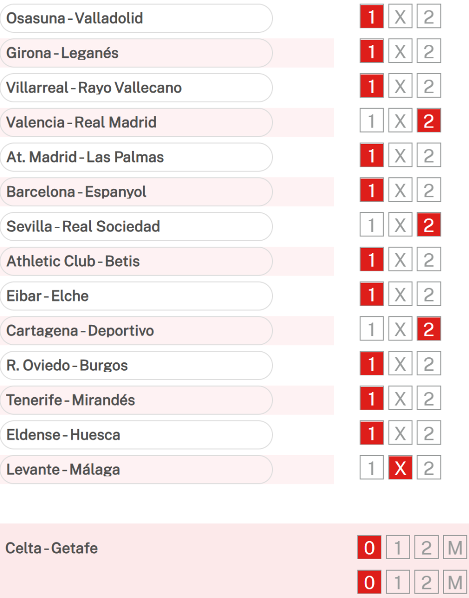 Estos son los partidos que entran en la Quiniela: