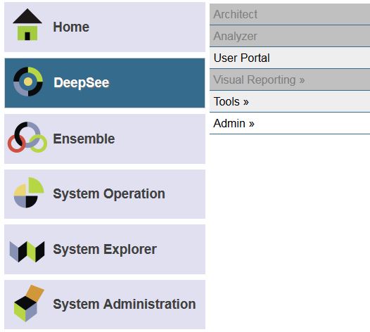 Tanto si accedes a DeepSee por primera vez como si estás configurando DeepSee en una instancia nueva, puedes encontrar dos incidencias habituales después de hacer clic en la opción "DeepSee" en el Portal de Administración del Sistema.
